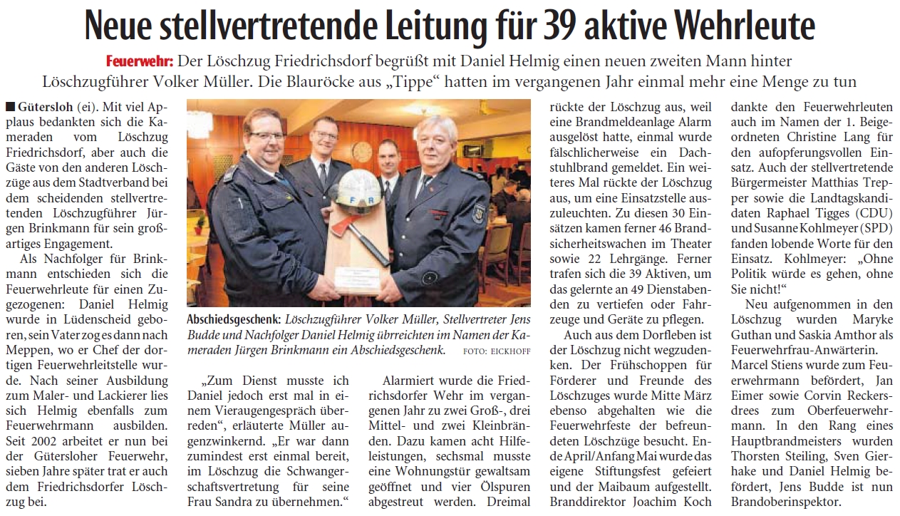 Der Löschzug Friedrichsdorf begrüßt mit Daniel Helmig einen neuen zweiten Mann hinter Löschzugführer Volker Müller. Die Blauröcke aus "Tippe" hatten im vergangenen Jahr einmal mehr eine Menge zu tun